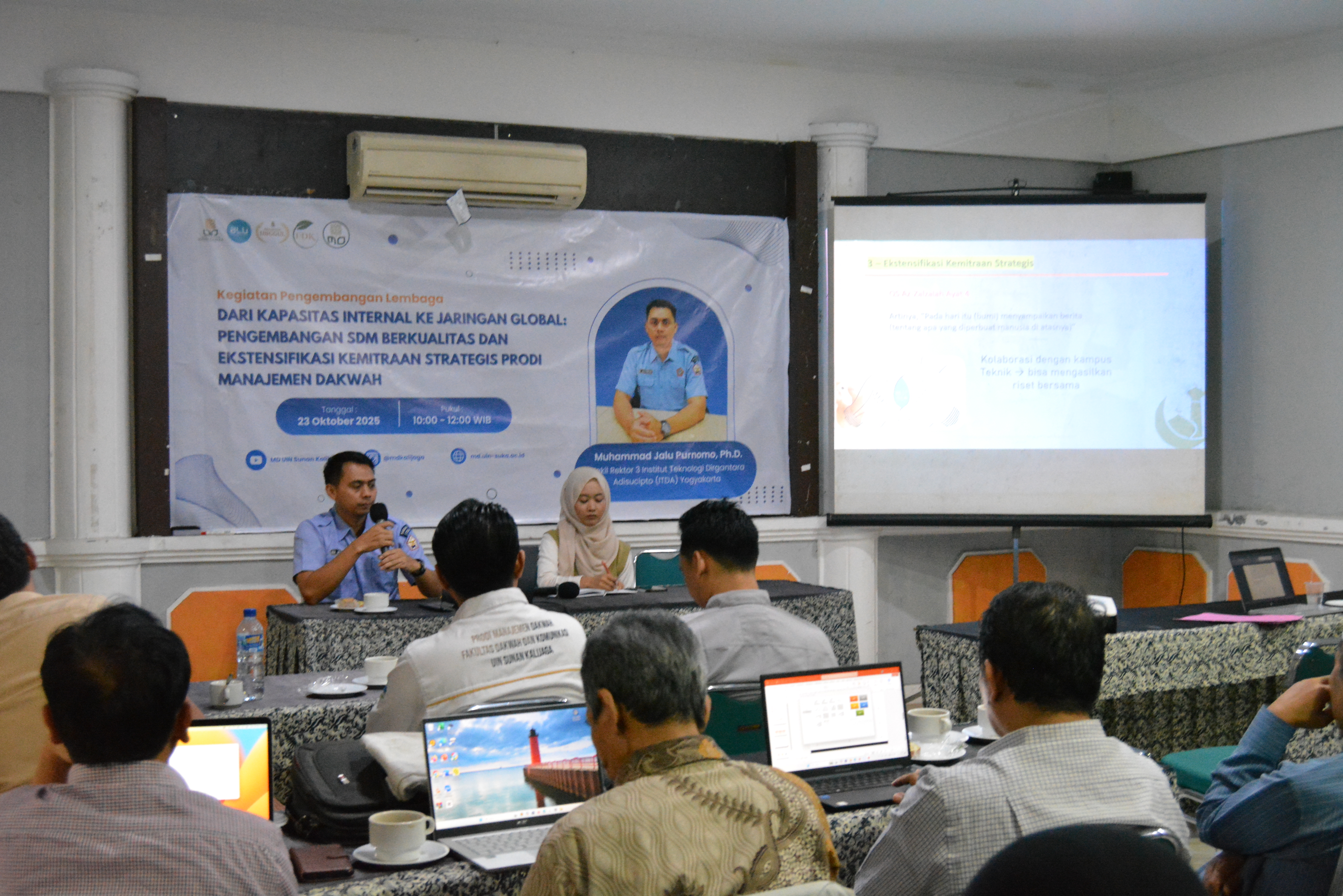 Kegiatan yang mengusung tema “Dari Kapasitas Internal ke Jaringan Global: Pengembangan SDM Berkualitas dan Ekstensifikasi Kemitraan Strategis Prodi Manajemen Dakwah” ini dilaksanakan pada Kamis, 23 Oktober 2025, bertempat di Goebog Resto, Banguntapan, Yogyakarta.